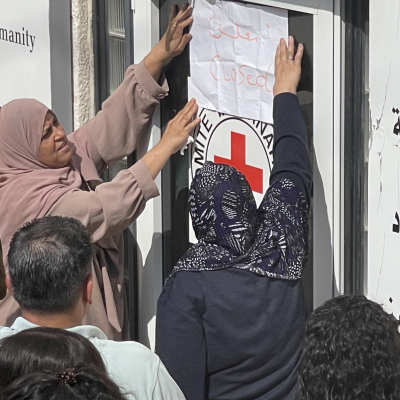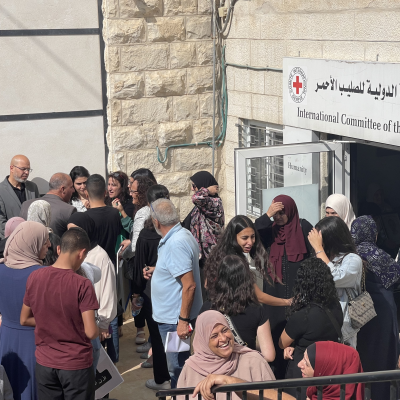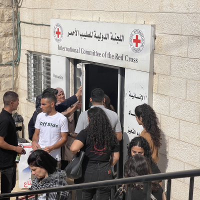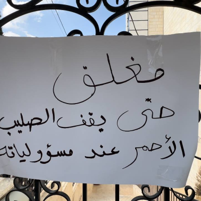 Representatives of institutions, activists, and the families of prisoners closed the International Red Cross office in Bethlehem today in protest against what they called the organization's neglect of Palestinian prisoners in the face of attacks on them in prisons and during daily arrests carried out by the Israeli army.