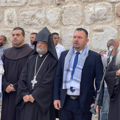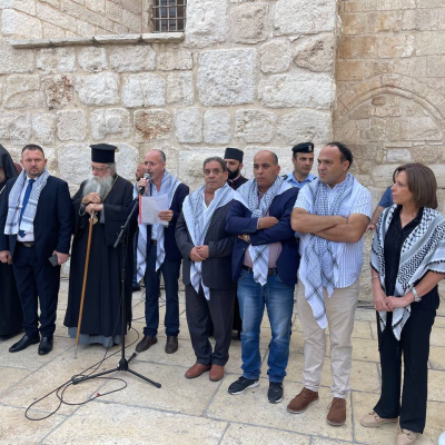 "Islamic and Christian religious figures confirmed in their speeches that they hope the symbolism of the Church of the Nativity will serve as a point to deliver the message of the oppressed to the world at large."