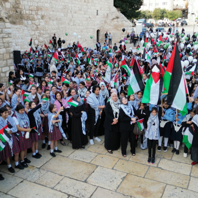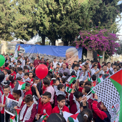 For his part Bassam Jabr, Director of Education Ministry in Bethlehem said "Today, on November 11th, the anniversary of President Yasser Arafat's martyrdom, as the Ministry of Education partnered with various entities, we organized this gathering with Bethlehem's school students to tell the world: enough of wars against the Palestinian people in Gaza and the West Bank. Enough of the genocide imposed on Palestinians in Gaza.