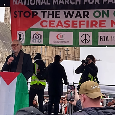 As in previous rallies, the Palestinian ambassador Dr Husam Zomlot and former UK Labour Party leader Jeremy Corbyn were amongst those addressing the hundreds of thousands who filled the streets in and around Parliament Square.
