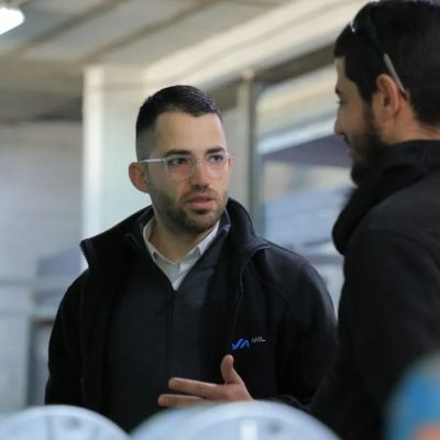 Rakan Ibrahim Abu Al-Hur, 27 years old, who work at the Company as a specialist in cutting and processing aluminum rolls." and supporting his family, which includes his mother, father, and five brothers and sisters, considers himself lucky to have a job and hopes the situation will improve soon.