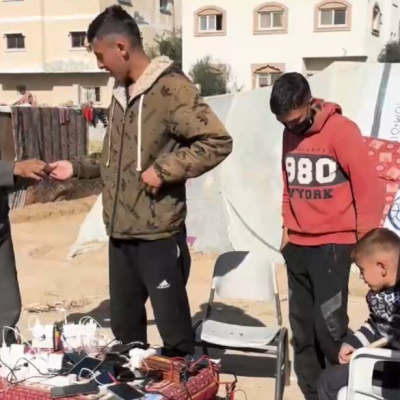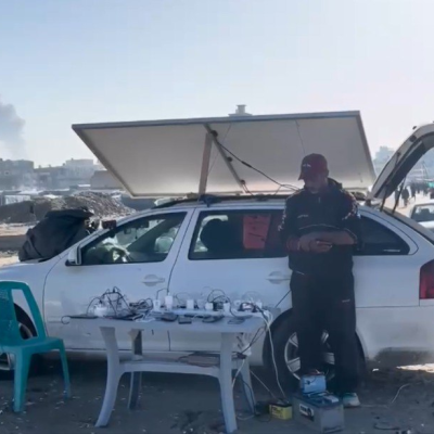 Abu Shamlah adds, "I started charging for people, and there is a significant crisis with electricity. Some people go to the hospital and wait for 4 hours to charge their phones, and in the end, they can't charge them."