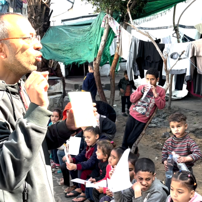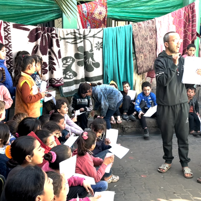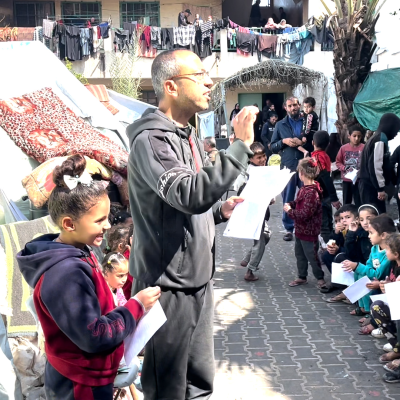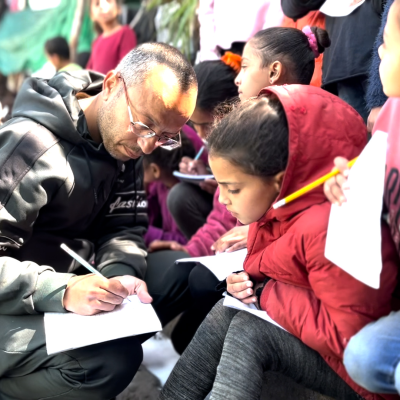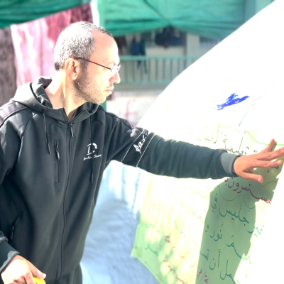 Mr. Mohammed concluded by expressing hope for support from various entities and initiatives to help him and the children continue their educational journey. He also hoped for the development of this initiative into a reputable academic institution capable of accommodating all children in the Gaza Strip, contributing to the ongoing educational process. He emphasized that nations are recognized through knowledge and education.