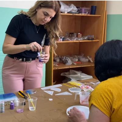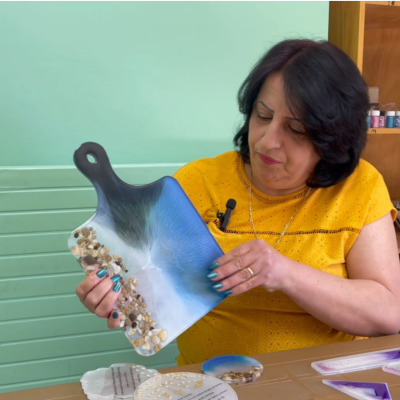 Hanan Benoura a teacher at Jamima for many years said she found the resin project and proposed it to the administration, which was a good idea. They took several courses to enhance their skills to give children the opportunity to work with it. After working with it, she found it to be intricate and not easy for children to work with, so they shifted towards making gifts, which was easier for them.