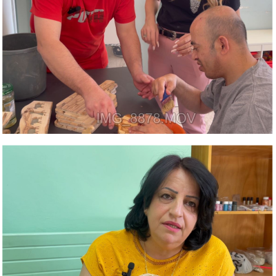 Lana Al-Zugbi added that the second program is the olive wood industry program, managed by one of the institution's own, Bahaa Samra, who was raised and nurtured within it. He was enrolled at the Salesian School to learn olive wood crafting until he became a creative young man in this field, with beautiful ideas drawn from both the internet and visits to other institutions working in the same field. Most of their works go to foreign tourists, Eastern antiques shops, and also to "Dar Al Mujawis" institution, which regularly purchases their works and pays the institution. Bahaa receives an official salary like any other employee within the institution and now sustains himself and his family through this income.