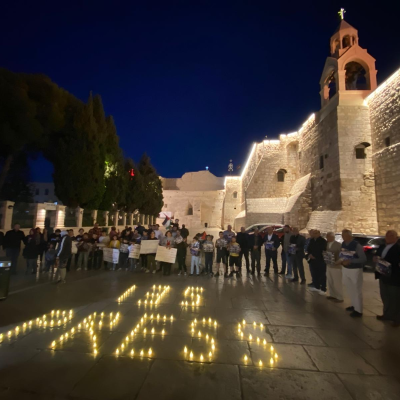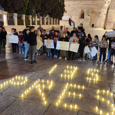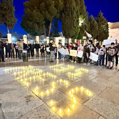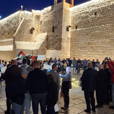 The protest took place on the courtyard of the Church of the Nativity, where a formation was arranged resembling the number 135, symbolizing the one hundred and thirty-five journalists who were martyred by the bullets and shells of the occupation, alongside the word "Press" as a symbolic gesture to the martyrs among the journalism profession. The organizers of the protest clarified that its aim is to draw attention to the plight of Palestinian journalists in front of the Church of the Nativity, the birthplace of Jesus Christ, the Savior of humanity from the injustice, hatred, and racism that are recurring these days.