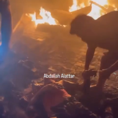 Videos from the bombing site showed horrific scenes from the massacre committed by the occupation in the displaced persons' camp near the UN agency barracks west of Rafah.