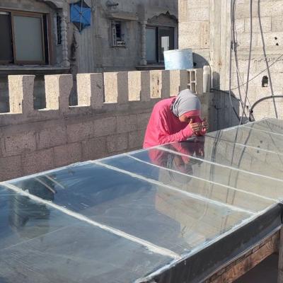 Despite the challenging security, economic, and living conditions in the Gaza Strip, where raw materials for manufacturing are scarce, Al-Ghoul has managed to use recycled materials to construct the solar still. She utilized wood, broken glass, and leather, along with available tarp pieces, to build the device.