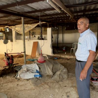 Hikmat Hamid noted that the family established a chicken farm in the 1990s, which had been a source of income for years, employing his son and his nephew. However, after the occupation forces installed a narrow gate on October 26th last year, they could no longer bring in the large trucks needed to transport chickens and feed. The family was forced to close down the farm, keeping only 40 chickens for their own food and self-sufficiency.