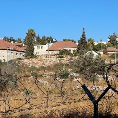 Barbed wire surrounds the wall enclosing the three houses, next to a settler road that was constructed only two months ago. There's also a gate with two keys—one held by the Hamid brothers and the other by the settlers.
