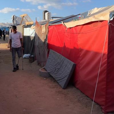 Abdullah remarks, "God willing, I will work on it again. No one succeeds on the first try. You have to persevere towards your goal." Although he is not entirely satisfied with the outcome, this crutch has helped him stand and fix his tent. He encourages others who have lost their limbs not to succumb to their illness, urging them to strive for what they can accomplish.