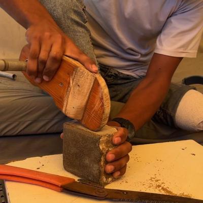 Determined to regain some independence, Abdullah decided to create a makeshift prosthetic for himself, inspired by a broken crutch. He used a piece of wood, a crutch, and a saw to assemble the components together. Abdullah explains, "I want to be like everyone else, to go and do whatever I want. My experience with the crutch was filled with challenges, but I am determined to improve it."