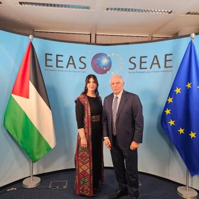 Ambassador Jadou conveyed the greetings and appreciation of President Mahmoud Abbas to Mr Borrell, recognising his principled stance on key issues. Describing the moment as “historic,” she emphasised the critical importance of strengthening bilateral relations between Palestine and the European Union.