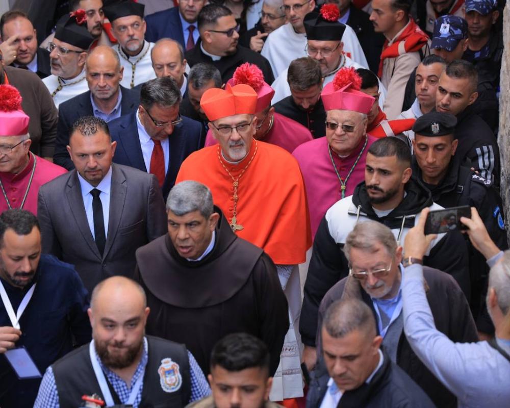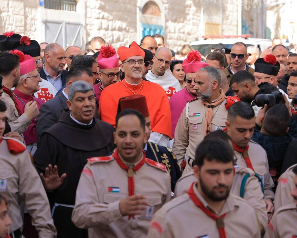 The procession of the Latin Patriarch of Jerusalem, Pierbattista Pizzaballa, arrived in Bethlehem from occupied Jerusalem, following the traditional Status Quo protocol.