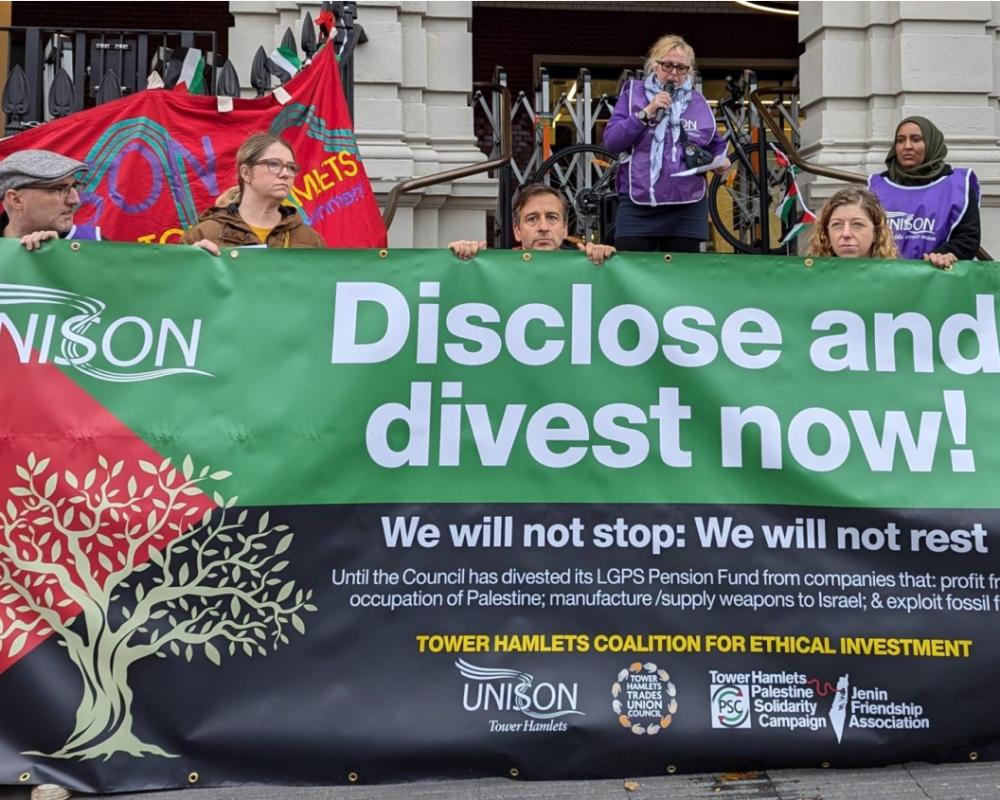 This decision follows an intensive campaign led by the Tower Hamlets Coalition for Ethical Investment, a partnership between the Tower Hamlets Palestine Solidarity Campaign (PSC), Tower Hamlets UNISON, and the Tower Hamlets Trades Union Council. The coalition, backed by a petition signed by over 1,600 local residents, workers, and students, has been lobbying the council for months to act on its investment portfolio.