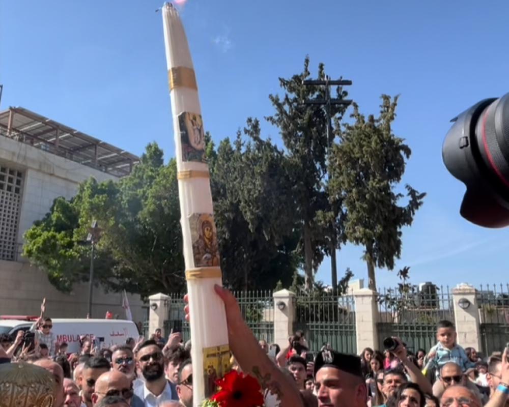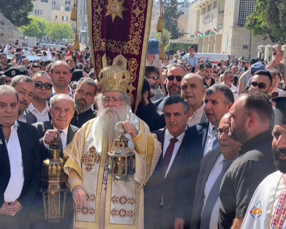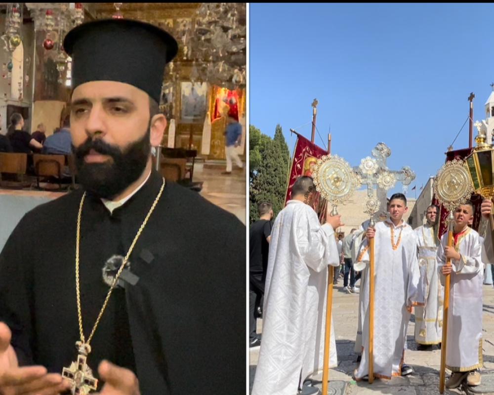 Father Issa Thaljieh, pastor of the Greek Orthodox Church in Bethlehem, said that due to the circumstances, the reception of the Holy Fire was limited to spiritual rites. “This year, the people of Palestine have lived through the Passion of Christ both spiritually and physically,” he said. “Through our prayers, we appeal to the world to help end the injustice and aggression we are enduring.”