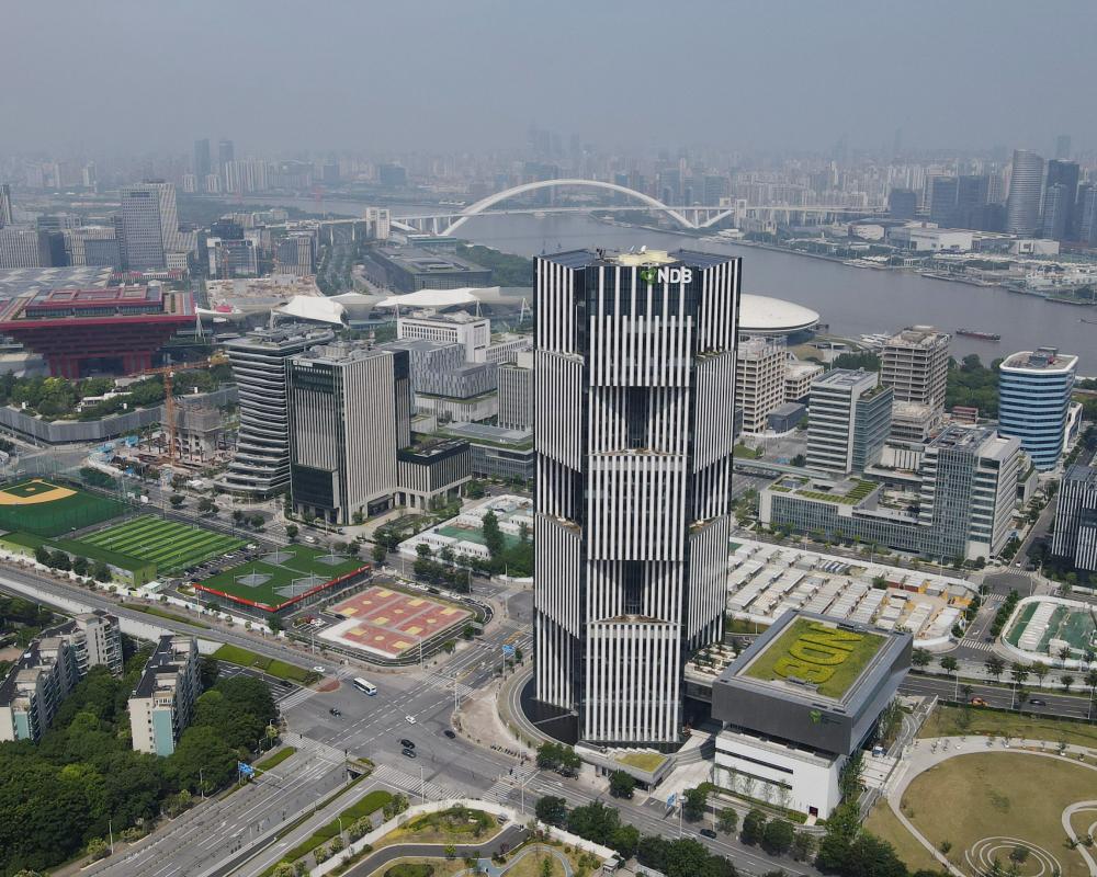 Nestled by the Huangpu River in Shanghai, the New Development Bank was founded by five BRICS countries in 2014 to provide financing support for member countries to bolster transport infrastructure, clean energy and digital infrastructure.