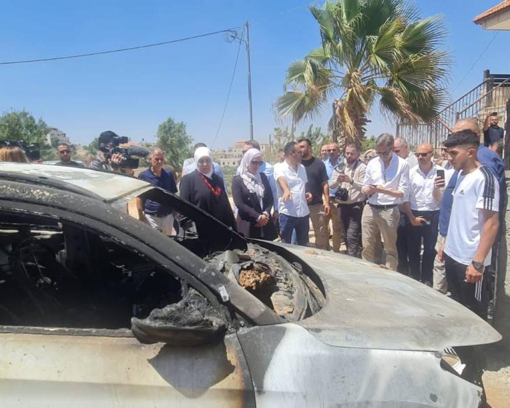 Comprising ambassadors and representatives of 22 diplomatic missions and representative offices, the delegation made their way to Kafr Malik, where the occupying forces killed three civilians on Wednesday after intervening to protect colonists during a violent assault on the village.