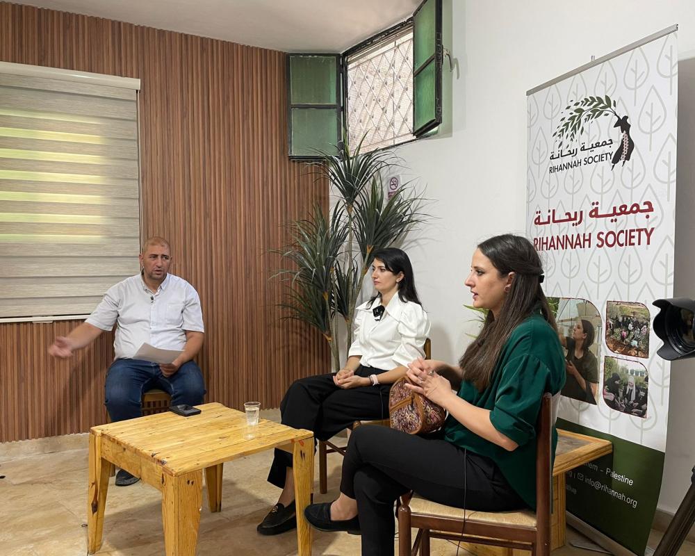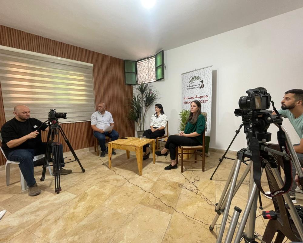 The call came during a televised discussion produced by the Rayhana Association, in cooperation with the Palestinian Environment Quality Authority and the Palestine News Network (PNN), with support from ActionAid Palestine. The programme was part of activities held during the Environmental Youth Camp at Rayhana’s headquarters in Al-Azza Refugee Camp in Bethlehem, bringing together 30 young men and women aged 15 to 30 from refugee camps in Bethlehem Governorate and surrounding areas under the initiative “Plant Awareness, Harvest Change.”