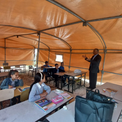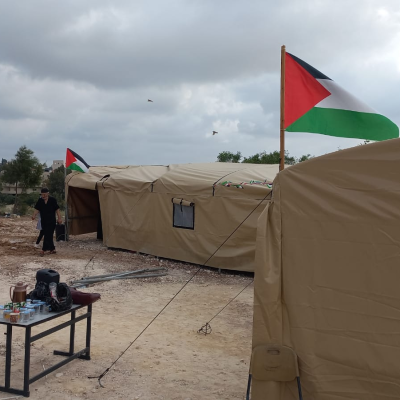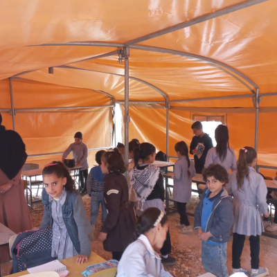 The Palestinian Ministry of Education, and the Wall Resistance Authority have set up tents in place of the demolished school, where attendance resumed this morning in the presence of the Bethlehem Director General of Education ministry , the Education Family, and the school principals.
