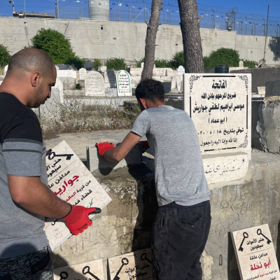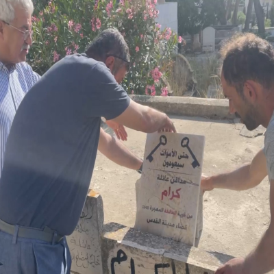 The event of erecting tombstones for the Palestinian refugees families and their villages, which was organized under the title "Even the Dead Will Return," symbolizes the inevitable return of our displaced families, both the living and the dead, as a fulfillment of the will of our brave ancestors not to abandon their right of return. This event was an act of provocation against the occupying soldiers who suppressed Palestinians by launching tear gas canisters at the participants.