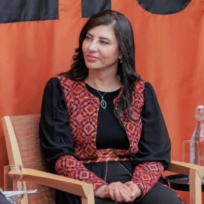 Furthermore, Dr. Jadou expressed deep gratitude to all those who supported and stood by her in her work, including her colleagues at the Palestinian Ministry of Foreign Affairs, friends, and those who believe in the capabilities of the women of this nation.