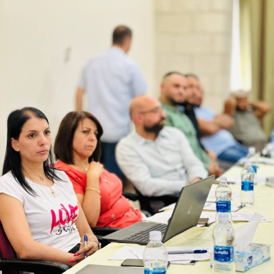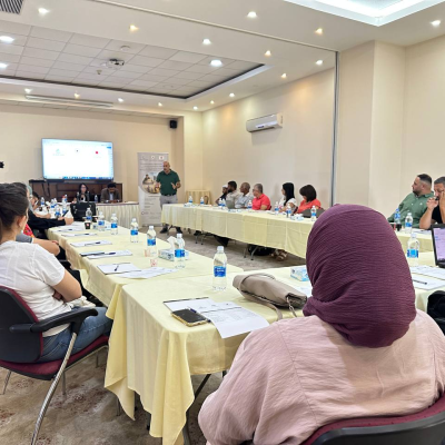 During the meeting, several workshops were conducted throughout the day. Raed Rajab discussed the financial procedures for grant disbursement and the importance of complying with the procedures set by the World Bank. Nabala Bannoura from the Palestinian Heritage Trail discussed the necessary procedures for project implementation. Heba Al-Hawash spoke about the bidding system, while Issa Al-Rabdi discussed monitoring, evaluation, and reporting systems. Nadine Sahhouri, responsible for the environmental and social framework, also shared her insights.