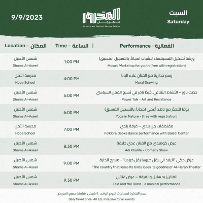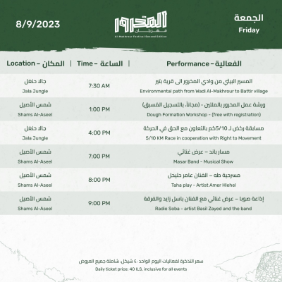 Bessiso noted that the festival aims to convey a clear Palestinian message: despite all of the occupation's obstacles and settlement harassment, Mukhur can carry the message of the land, place, memory, and geography to spaces that can challenge the policies of occupation and settlement.