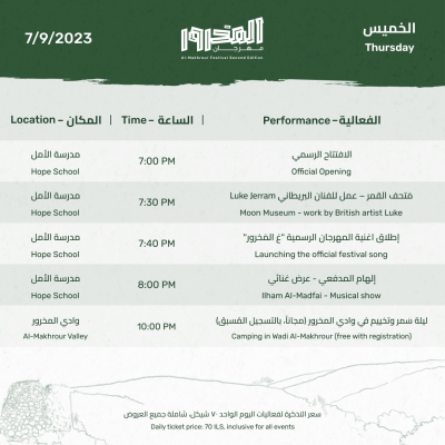 Speakers at the festival, organized by the Anad Center, emphasized that Israeli measures would not deter them from continuing the Mukhur festival, which includes over 25 cultural, artistic, and sports events, all of which aim to reaffirm the Palestinian right and presence in the targeted Mukhur lands.