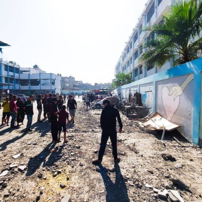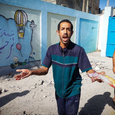 “Today, a school-turned shelter was damaged at the Jabalia Refugee Camp, the largest in the Gaza Strip, reportedly killing at least 20 people and injuring five. This comes after two days of heavy bombardments in the area. Earlier today, another shelter at Beach Refugee Camp was also damaged, with one child reportedly killed. Both locations are in the north of the Gaza Strip.