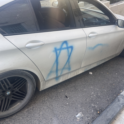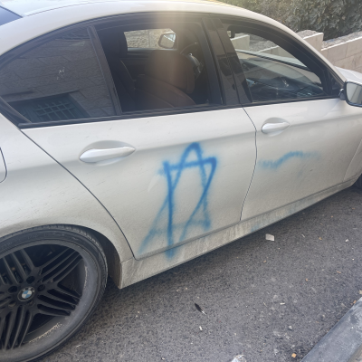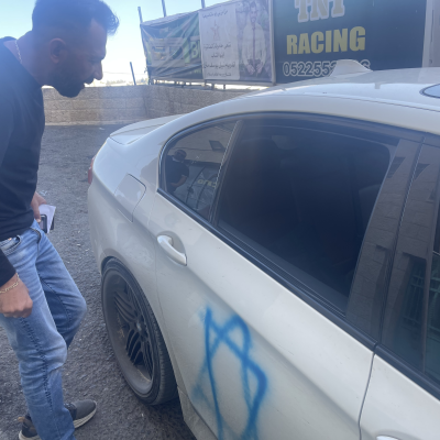 One of the settlers sprayed a Star of David on the car, which Handal discovered after escaping from among the settlers.