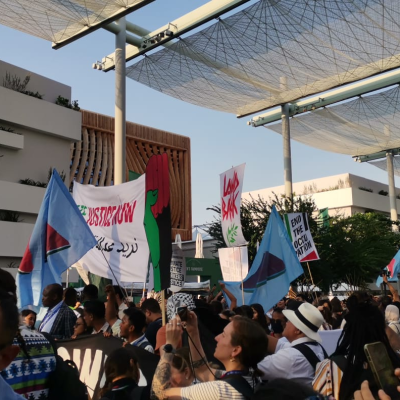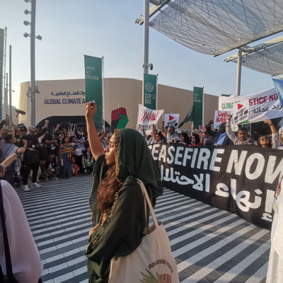 "Global Activists Rally in Dubai Urging Climate Conference to Condemn Israeli Aggression in Gaza