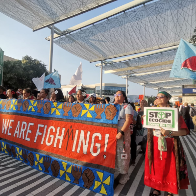 Hundreds of environmental justice activists marched in the Blue Zone, where countries negotiate climate improvements, amid numerous conferences and workshops aiming to achieve climate and environmental justice and reduce the risks they face.