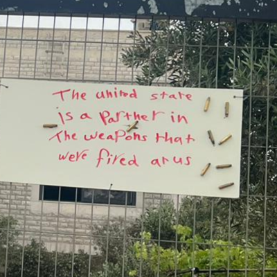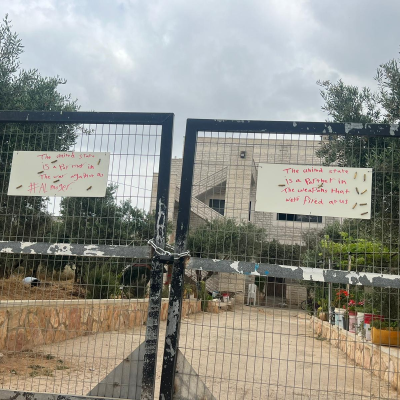 With slogans written on the entrances of village houses declaring the United States as a partner in the weapons that were fired at them, the residents of Al-Mughayir village refused to welcome the deputy US ambassador and his accompanying delegation during their visit to the village to observe the effects of recent attacks by the occupation army and settlers in the past few weeks.