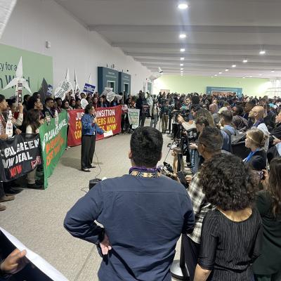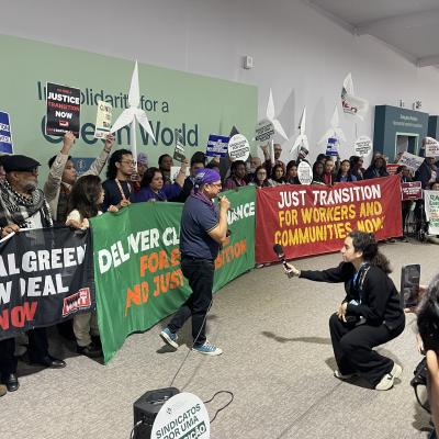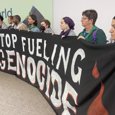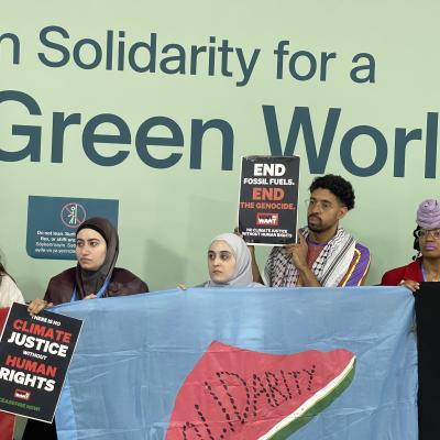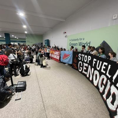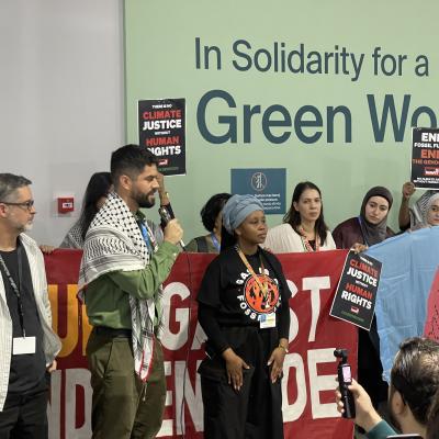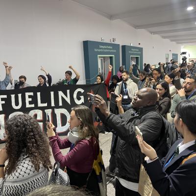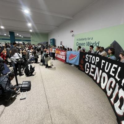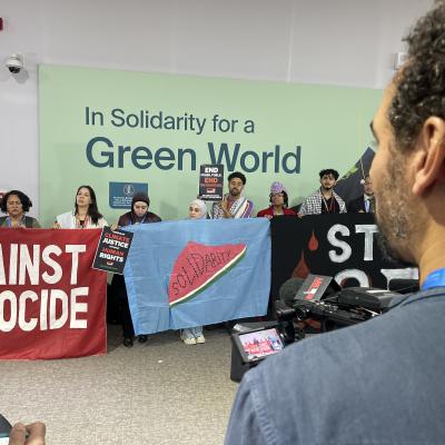 "We stand here in support of the Palestinian people, as well as the Lebanese and Sudanese, because the international system responsible for oppressing these peoples is the same system that silences us and controls the policies of this climate conference," said Cortez.