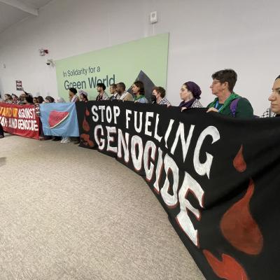 Abeer Al-Batma, a Palestinian environmental activist and coordinator for Friends of the Earth International, highlighted that the protest was organized with the participation of hundreds of activists from international organizations. She stated that the event aimed to draw attention to the use of energy in committing acts of genocide and war crimes, stressing the need to halt such supplies to bring an end to the war.