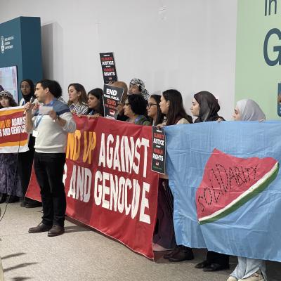 She added, “I come from Colombia, a country that has banned the export of energy to perpetrators of massacres. We cannot justify these actions under the guise of economic interests. These atrocities must stop, and we are here because we demand justice for Palestine and its people.”