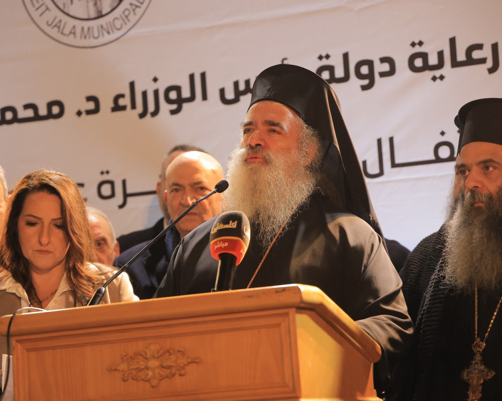 Beit Jala Mayor Issa Ja‘anineh welcomed guests, saying the city would remain steadfast “until the bells of truth ring, a just and comprehensive peace is achieved, and the Palestinian state is established with Jerusalem as its capital”.