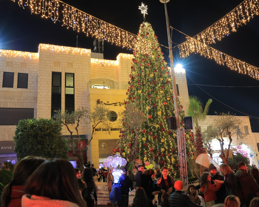 Beit Jala marked the lighting of its Christmas tree this year with a distinctive national celebration that paid tribute to Gaza in particular and to the Palestinian people as a whole, underscoring the people’s will to remain rooted in their land, like the olive tree.