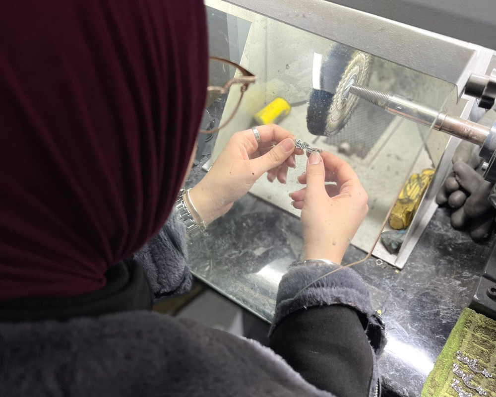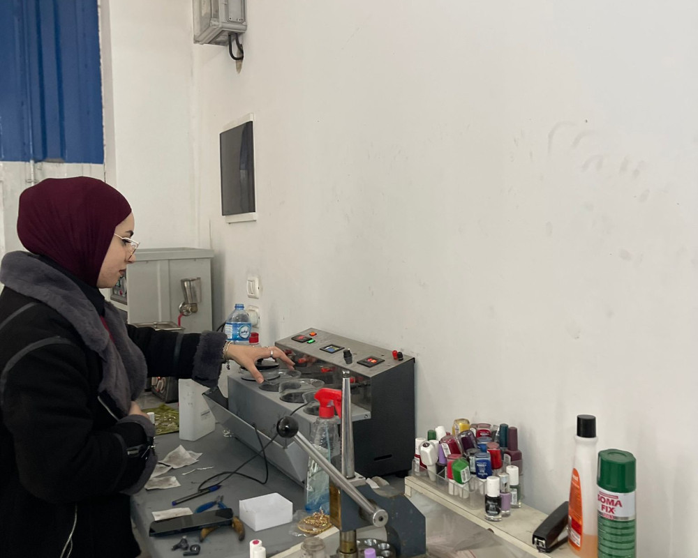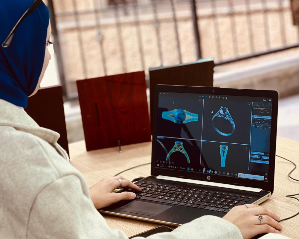 Rahaf Saeed, a young woman from the city of Hebron, holds a diploma in jewellery design and goldsmithing from the Deanship of Vocational Training and Continuing Education, a community service centre at Palestine Polytechnic University. This academic path laid the professional foundation that enabled her to enter the world of design and craftsmanship with confidence and clarity.