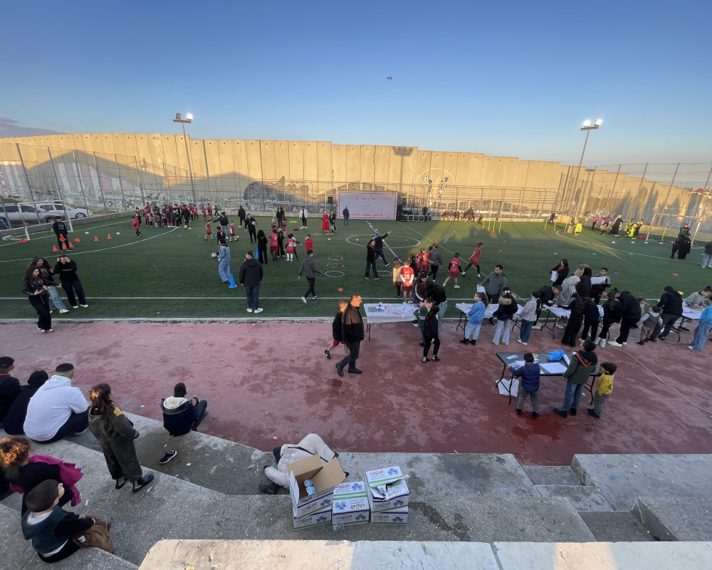 The events included recreational and sporting activities, as well as drawing sessions, with hundreds of children from the centre and Aida camp taking part. Through these activities, the children reaffirmed their attachment to the pitch and their right to play there, describing it as their “space of hope.”