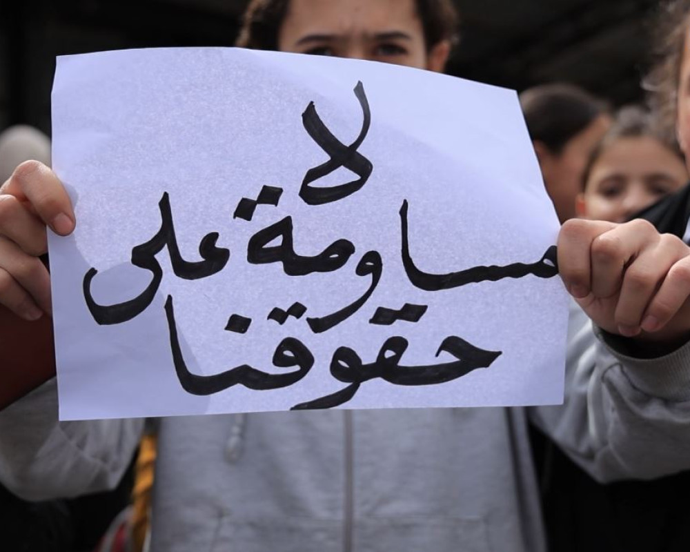 Protesters carried banners rejecting reductions in social assistance, health care and education services, as well as shorter working hours and salary cuts for employees. They said the measures harm refugees’ rights, particularly the right of return.