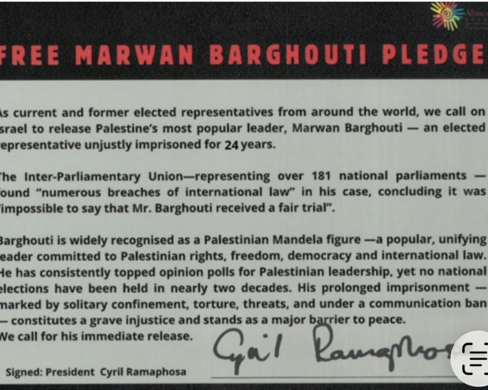 The international campaign for the release of Palestinian prisoner Marwan Barghouti said that South African President Cyril Ramaphosa has signed a petition calling for his immediate release, becoming the first sitting head of state to join the initiative.